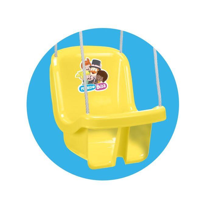 Balancinho fabricado em plástico, com assento anatômico, ideal para os pequenininhos. Possui trava de segurança e cordas para pendurar o balanço em qualquer estrutura. Com adesivo do Bita, o personagem favorito da criançada.
