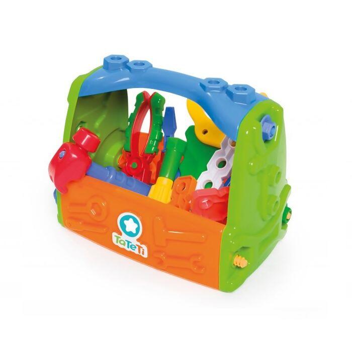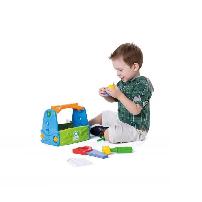 Caixa de ferramentas para criar, montar e desmontar! Estimula a imaginação, o desenvolvimento social, promove a aprendizagem de conceitos ao imitar uma atividade cotidiana e desenvolve o pensamento lógico ao planejar a brincadeira.