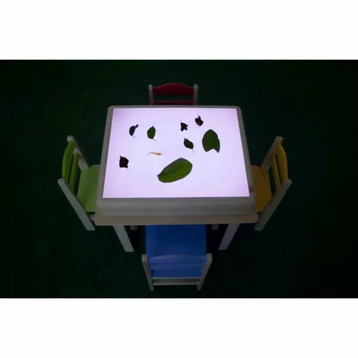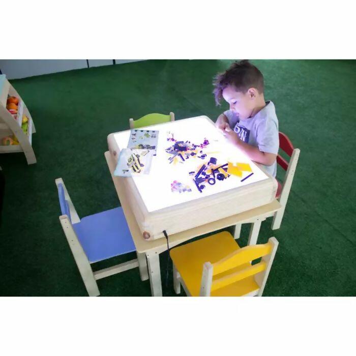 A Caixa de Luz Branca Reggio Emilia pode ser colocada sobre uma mesa para dar o devido apoio e pode ser usada nas escolas ou até mesmo em casa já que auxilia no desenvolvimento da criatividade e imaginação das crianças.