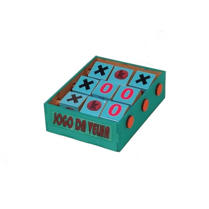 O Jogo da Velha Caixa é um jogo clássico que estimula a coordenação motora, concentração, raciocínio lógico e estratégia. Gira as peças dentro da caixinha para jogar.