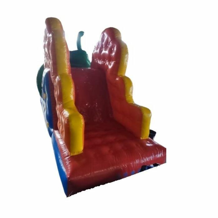 Brinquedo inflável temático multicolorido, com escalada e escorrega. Super divertido e chamativo. Ideal para buffet infantil e locação.