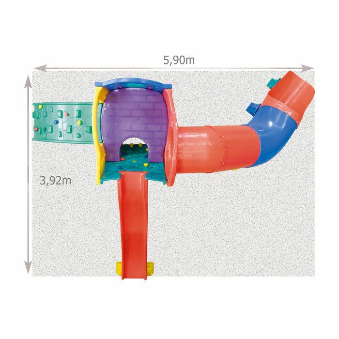 Medidas Comprimento: 5,90mLargura: 3,92mAltura: 2,50m Idade sugerida: Crianças de 4 a 9 anos, acompanhadas por adulto.Fabricante: Mundo Azul