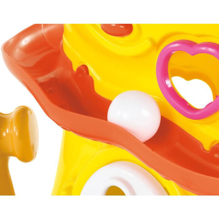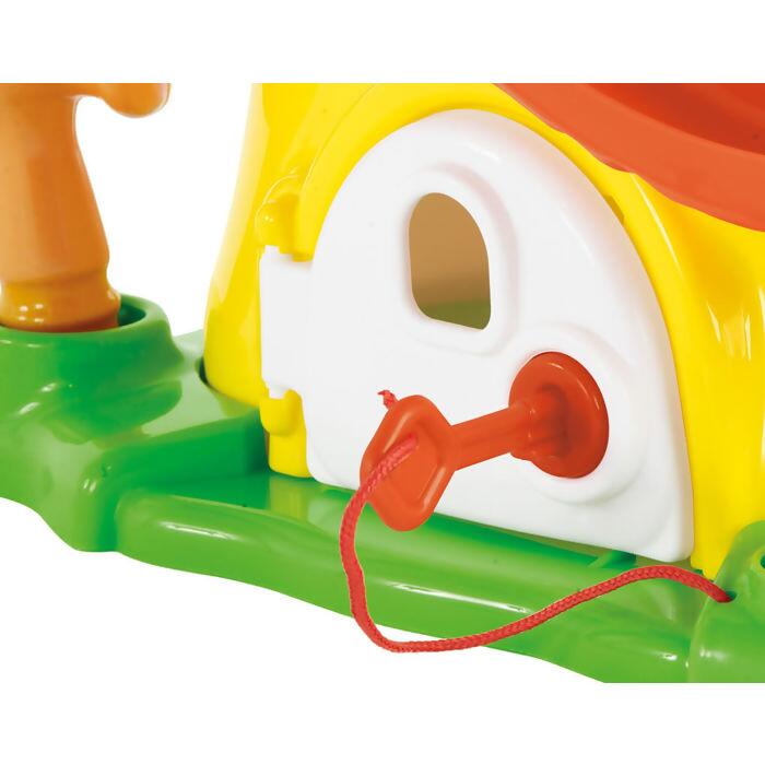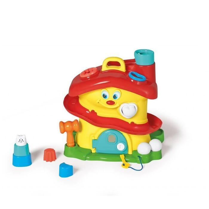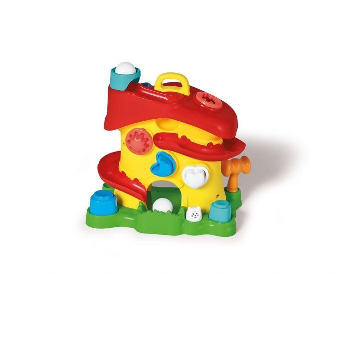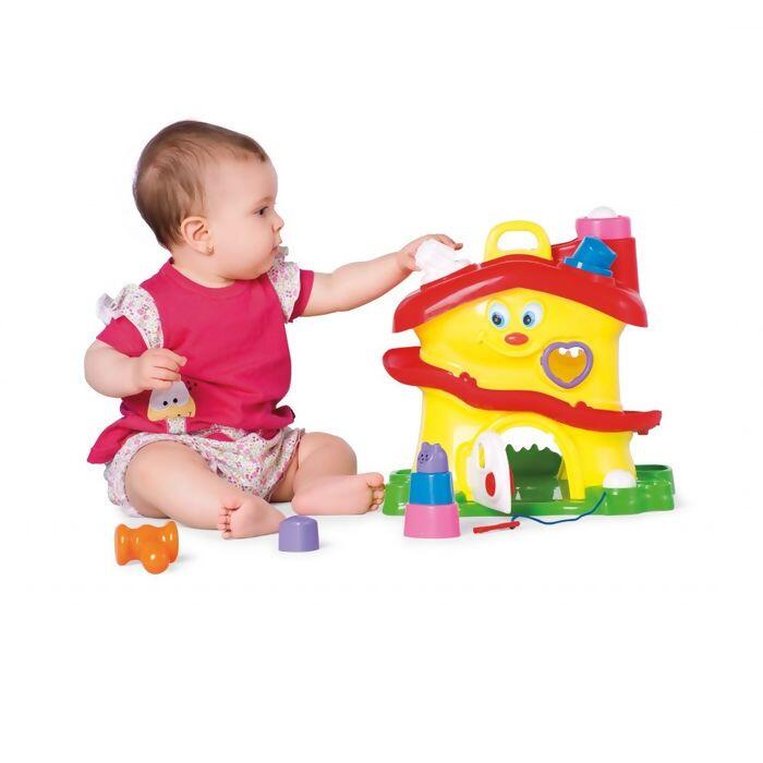 A Activity House é um brinquedo didático para crianças a partir de 18 meses. Vem com bloquinhos coloridos que ensinam a distinguir cores, formas e tamanhos. A portinha abre e fecha com chave para que a criança possa pegar os bloquinhos de volta. A brincadeira fica mais divertida com a bolinha que entra pela chaminé e cai por um tobogã em volta da casa. O brinquedo ainda vem com um martelinho que impulsiona a bolinha e afina a coordenação motora do bebê. Este produto faz parte da linha de brinquedos educativos da Tateti.