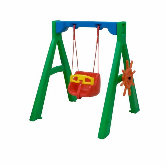 O gostoso vai-e-vem de um balanço é uma das brincadeiras mais antigas que se tem notícia. O protetor frontal é preso à cadeirinha por um cinto de segurança que evita que a criança escorregue por baixo do protetor ou então que ela o levante. Com estrutura totalmente em plástico, é muito prática e fácil de montar, além de ter locais própriospara fixação no chão. E se a criança se cansar do balanço, ela pode brincar com o simpático timão de navio, que gira de verdade, instalado na lateral. Ideal para quem quer divertir uma criança com total segurança.