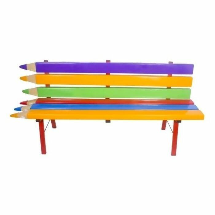 Banco infantil em forma de lápis multicolorido que auxilia no aprendizado das cores.