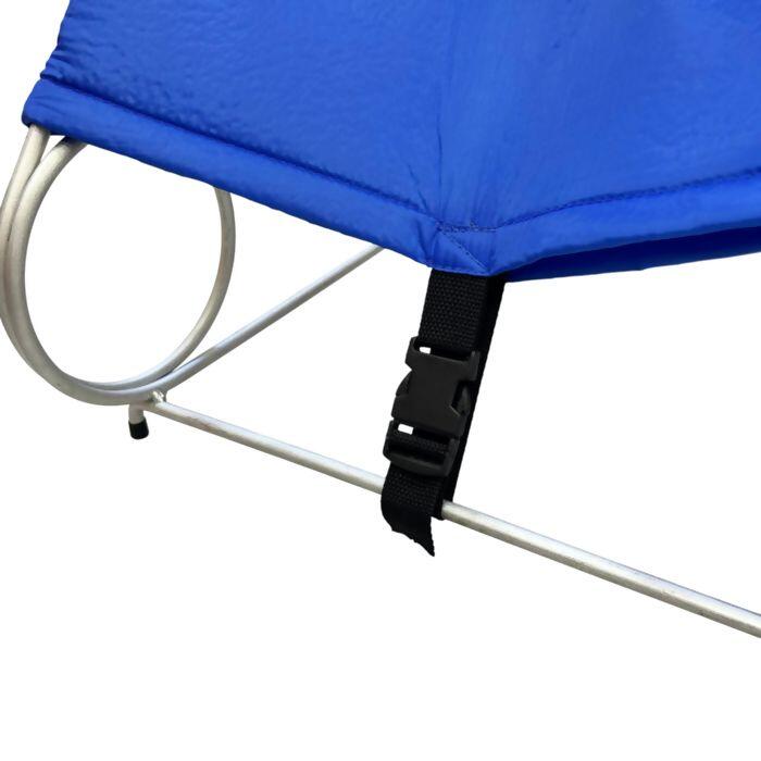 Possui estrutura desmontável em aço galvanizado com forro lavável em nylon dublado, leve e fácil de transportar. Possui uma espuma protetora na parte superior e um cinto para prender o tecido na estrutura.