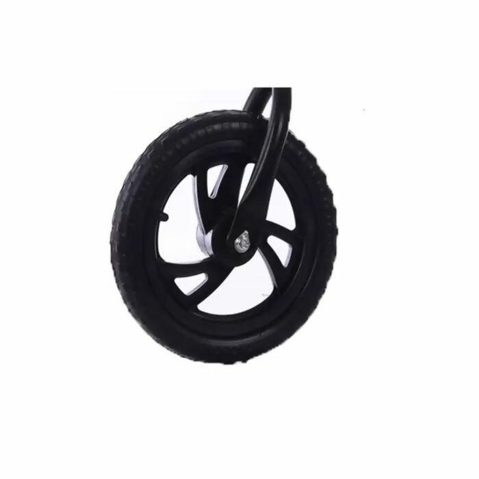 Traz segurança para a criança, pois permite que ela apoie os pés no chão a qualquer momento. Os pneus de EVA garantem aderência ao chão.