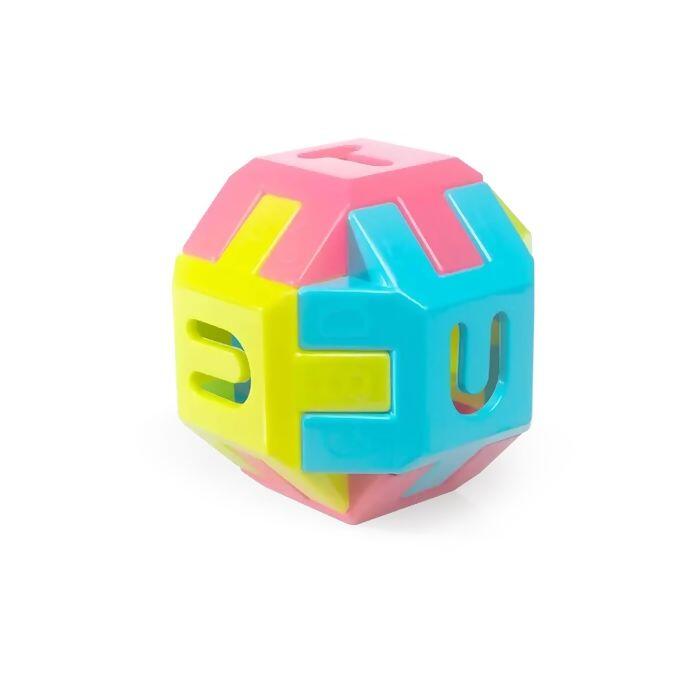 Cada face da bola contem peças para encaixar que permitem às crianças interagir e explorar de forma prática e lúdica.