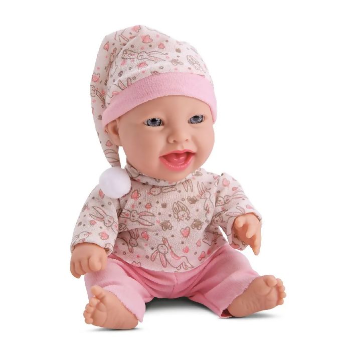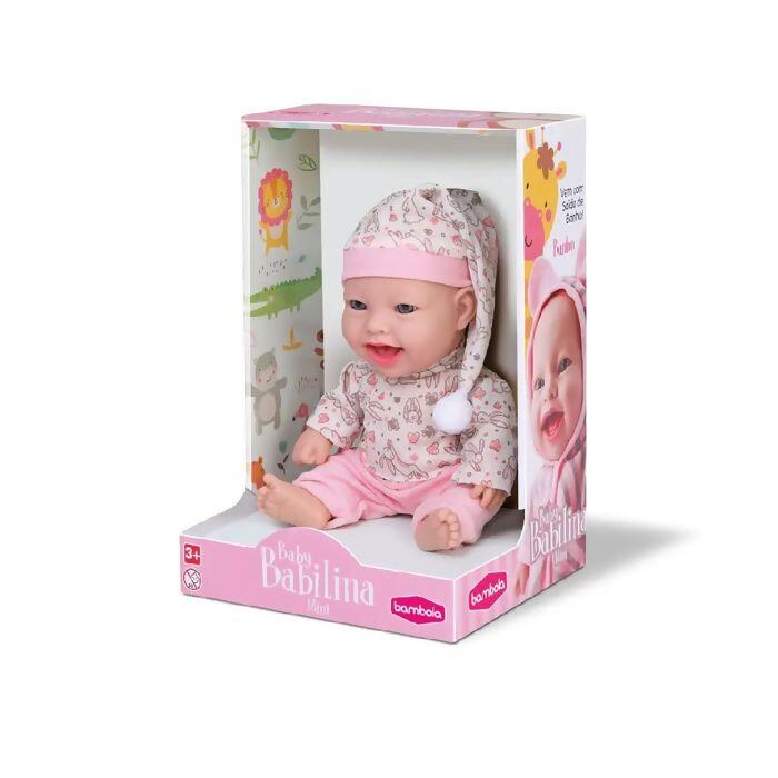 A boneca Baby Babilina vai vestida com um pijaminha e touca e seu corpinho é feito todo em vinil macio. A boneca tem 25cm.