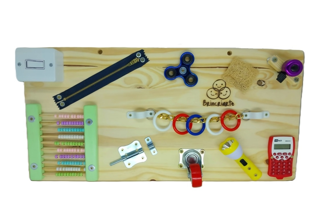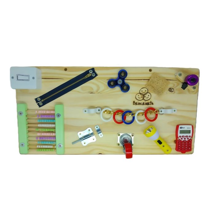 O “Quadro de atividades grande” (busy board) é magnífico para o desenvolvimento da coordenação motora fina assim como para os estímulos sensoriais e desenvolvimento dos bebês e crianças.