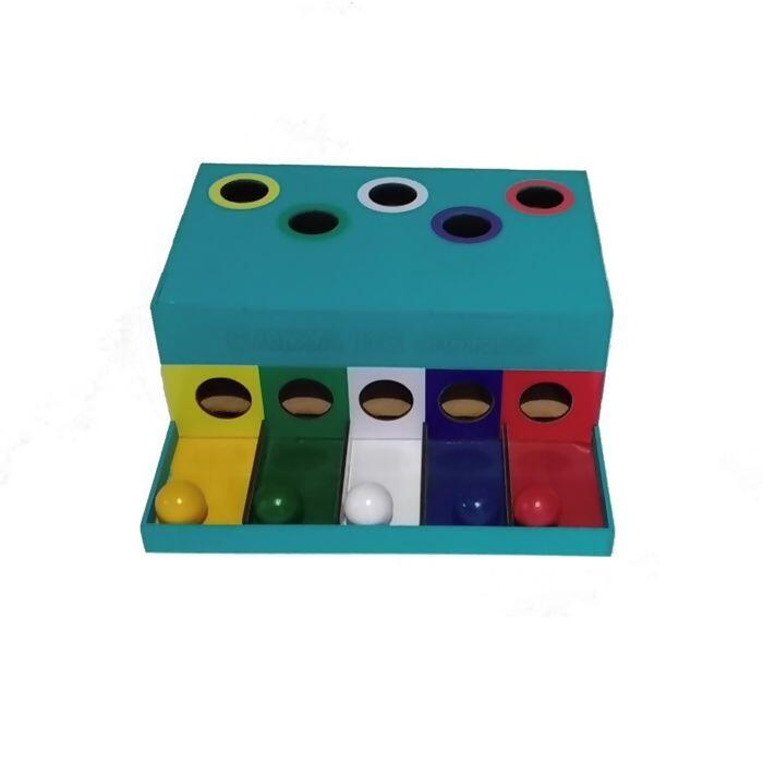 Caixa de CoresA Caixa de Cores é um brinquedo educativo que ajuda no desenvolvimento da percepção e aprendizagem das cores, além de estimular a coordenação motora. Acompanha 5 bolinhas para encaixar nas respectivas cores.*Imagem meramente ilustrativa. As cores do produto podem variar.