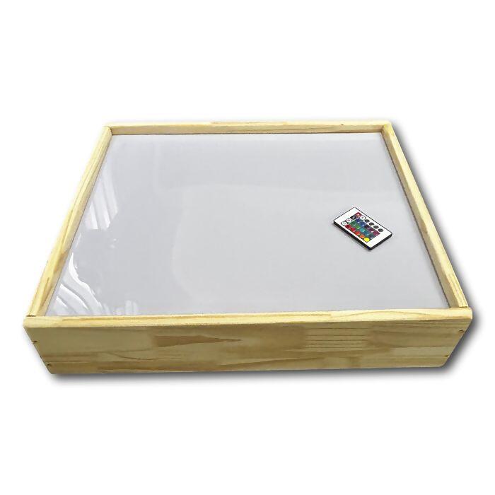 Com iluminação suave e uniforme, permite que diversos materiais – como papéis translúcidos, folhas, elementos naturais, blocos coloridos ou letras em acrílico – ganhem nova vida sob a luz, despertando a curiosidade e promovendo a investigação visual.