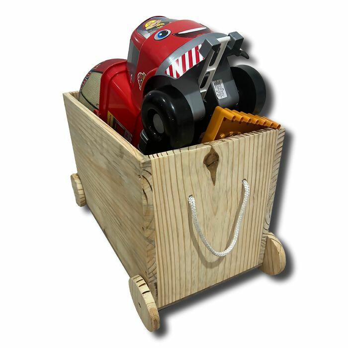 Descrição Carrinho Guarda Brinquedo em Madeira