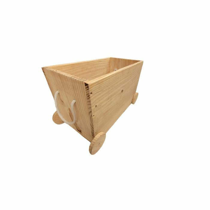 Mantenha a diversão sempre organizada com o Carrinho Guarda Brinquedo em Madeira! Este charmoso carrinho estilo baú não só proporciona armazenamento prático, mas também é uma peça de brincadeira por si só, com rodas de madeira e alças para puxar.