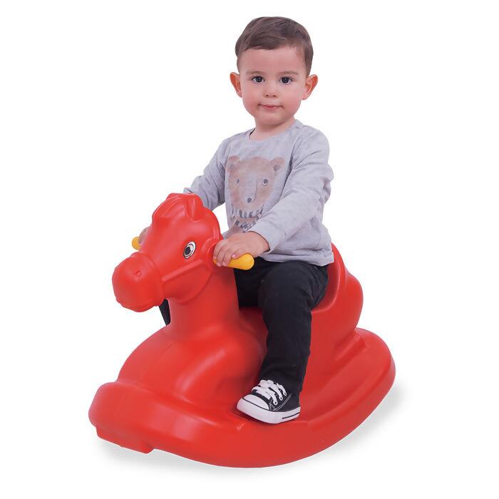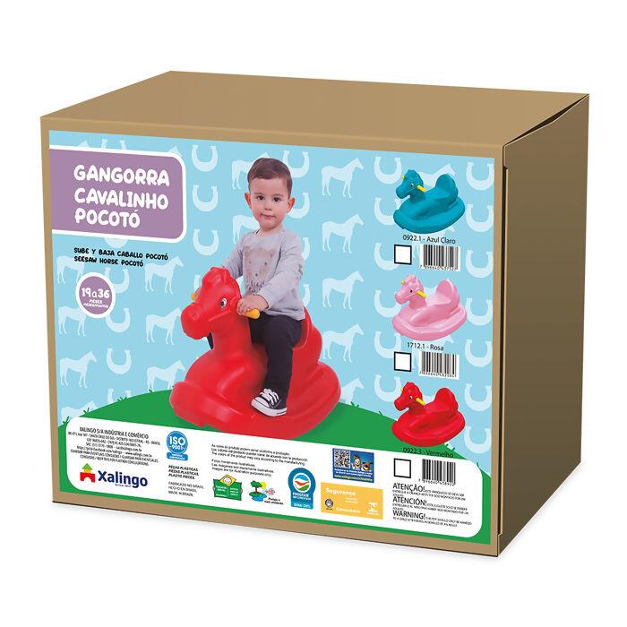 Cavalinho Pocotó Vermelho XalingoO Cavalinho Pocotó da Xalingo é resistente e durável. Seu formato e suas cores vivas são um atrativo para as crianças. Ideal para escolas, creches, parquinhos, espaço kids de restaurantes, pizzarias, buffets infantis, playgrounds de condomínios ou em casa. Fabricado em plástico soprado, leve e fácil de ser transportado, possui assento anatômico, proporcionando conforto e segurança ao brincar. Possui base em forma de curva, e apoio para os pés, garantindo um balanço suave e uniforme. Os punhos são do tamanho ideal para que a criança possa se segurar melhor no brinquedo.Possibilita o desenvolvimento da coordenação motora, o equilíbrio e a concentração das crianças.