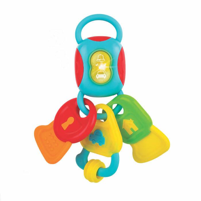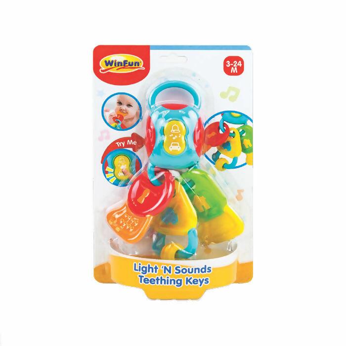 Chaveiro Mordedor com Luz e Sons Winfun* Chaveiro de iluminação com 3 chaves e sons e melodias divertidos* As teclas de texturas únicas acalmam as gengivas do bebê que estão com os dentinhos nascendo* Estimula a exploração, consciência visual e tátil* 2 baterias “AG13/LR44? (Inclusas)