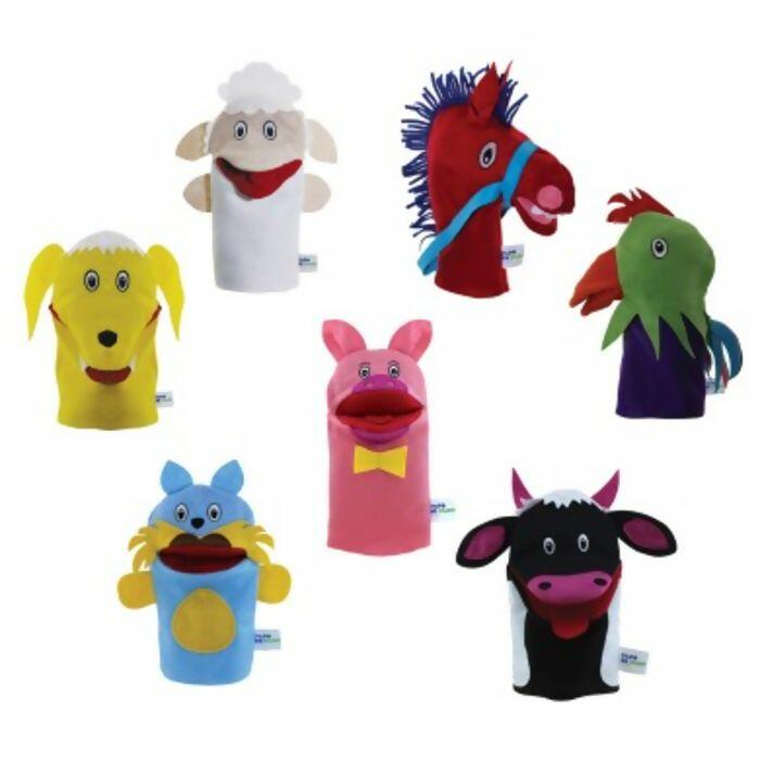 Conjunto de fantoches de mão produzidos em feltro, com boca articulada composto por 7 fantoches: Cavalo, Vaca, Pato, Galo, Coelho e Cachorro.. Os detalhes de todos os personagens são costurados para oferecer maior segurança, assim como os olhos, que são todos bordados. Costura de alta qualidade e resistência. Desenvolve a atenção, a coordenação motora, a criatividade e a imaginação.