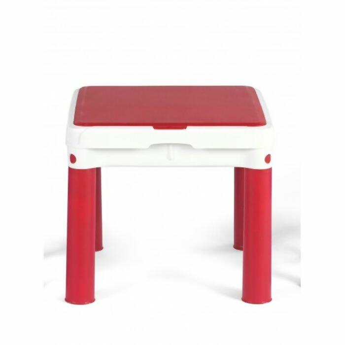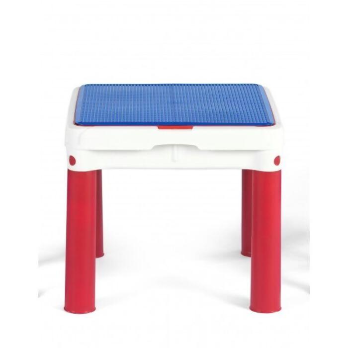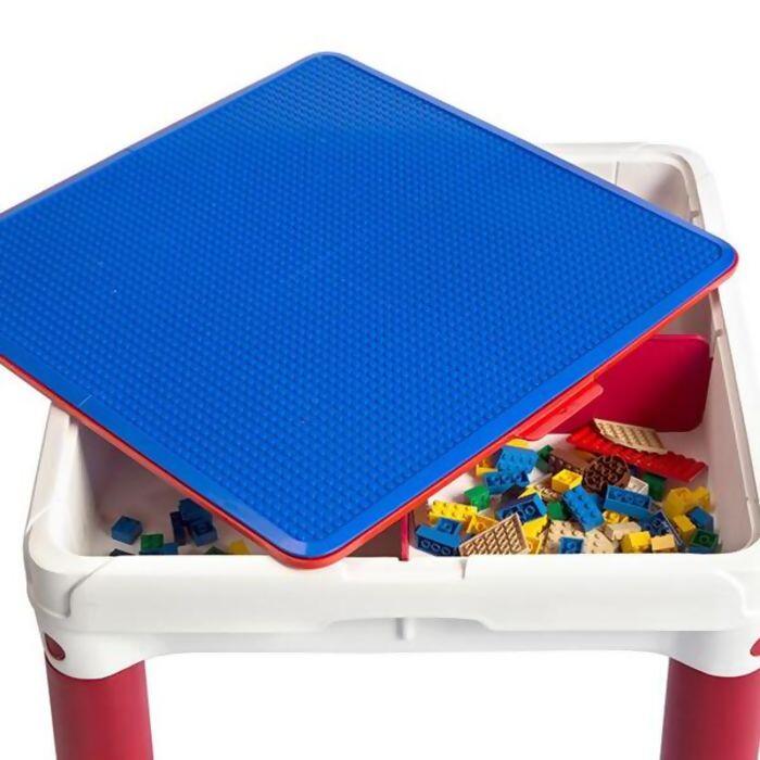 A Mesa e Cadeiras ConstruKids da Keter é 3 em 1! O tampo da mesa é dupla face, um lado serve para atividades criativas e o outro serve como um painel de construção para que a criança brinque com blocos de montar. Também pode pendurar a superfície de construção na parede. O conjunto vem com duas cadeiras que podem ser facilmente armazenadas embaixo da mesa. Possui espaço de armazenamento embaixo do tampo da mesa.