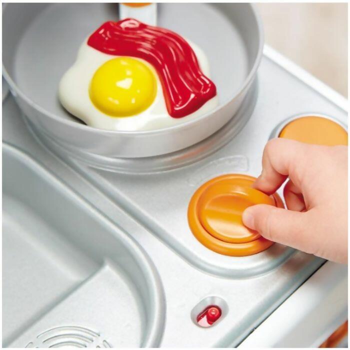 Com som no acendedor do fogão que imita um fogão de verdade.