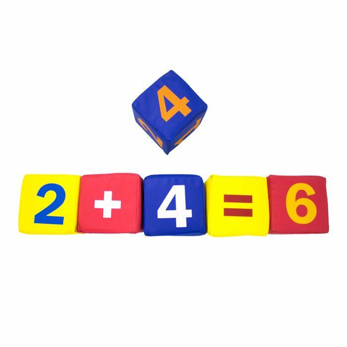 Conjunto composto por 06 dados de espuma serigrafados que contém números e sinais de 10x10x10 cm cada e revestidos com bagum. O conjunto Dados de Números e Sinaisé super divertido e educativo, e ainda acompanha uma embalagem plástica.