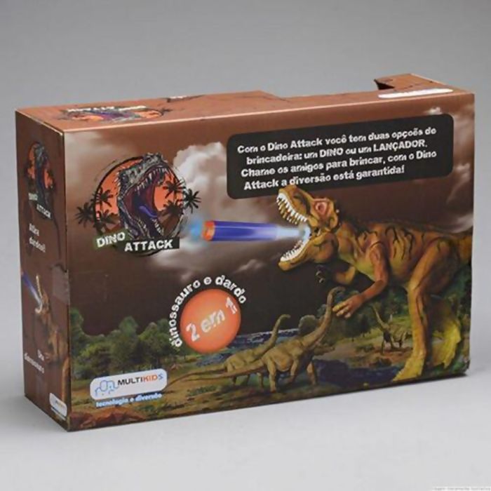 O Dino Attack da Multikids é muito divertido! Esse dinossauro todo detalhado emite um forte rugido e acende seus olhos através de um botão. Acompanha seis dardos para que você possa lançar facilmente através de um único movimento em seu rabo, tornando-o ainda mais poderoso e perigoso para acertar seus inimigos. Sua espuma é macia para brincar com segurança e diversão. Utiliza 3 baterias AG13 (inclusas).