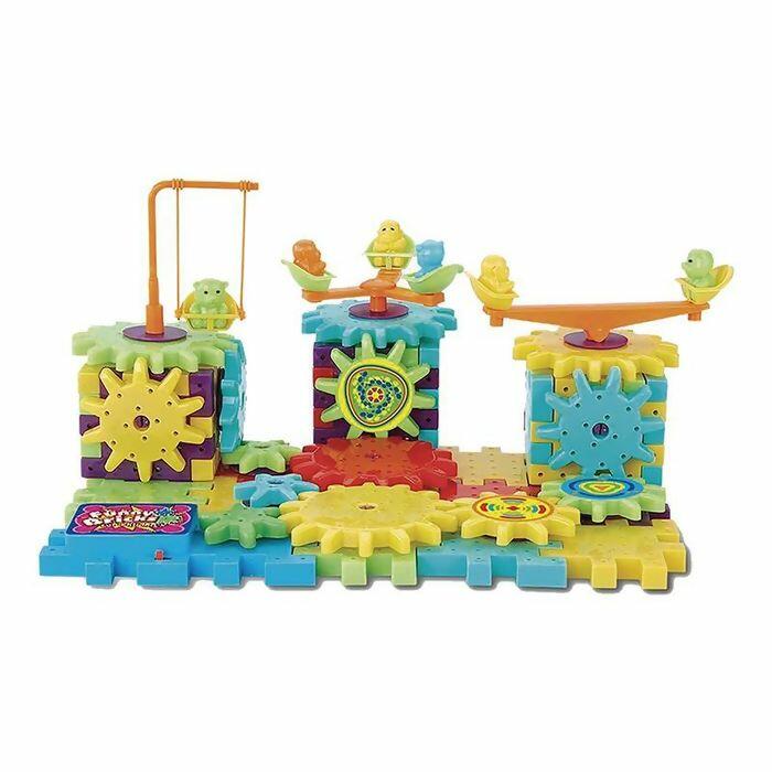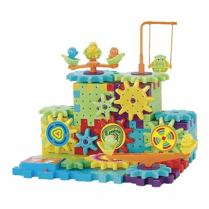 A Engrenagem Maluca foi feita para desenvolver habilidades motoras, contagem, organização, combinação, resolução de problemas, causa e efeito, pensamento crítico, pensamento em sequência, psicomotricidade fina, coordenação motora-visual, identificação de cores e criatividade para criar novos cenários para sua brincadeira.