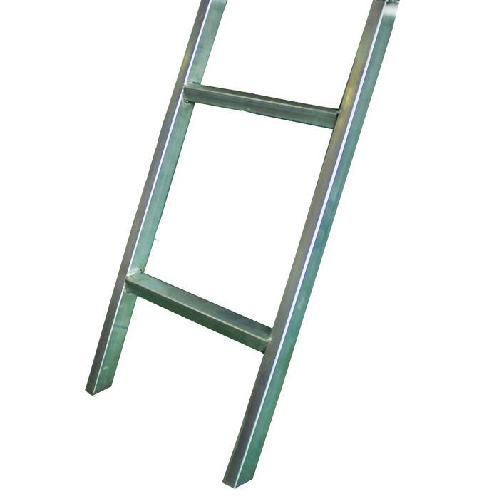 Escada galvanizada com encaixe moldado, para não soltar com facilidade. Recomendada para cama elástica de 1,83, 2,00 e 2,44.