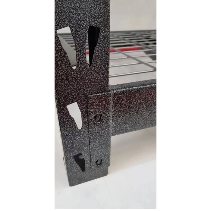- Acabamento premium: A pintura eletrostática protege a estante contra ferrugem e desgaste, garantindo um visual impecável e maior vida útil.