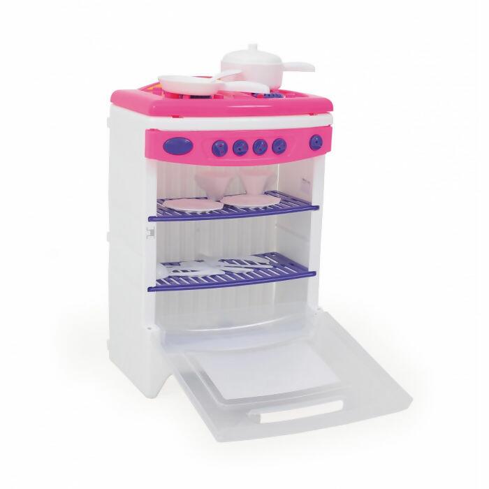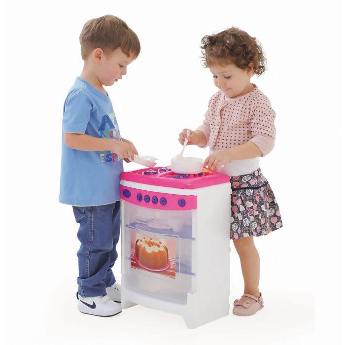 Um lindo fogãozinho com 4 bocas e som. O seu mini chef irá se divertir brincando de "cozinhar" suas comidinhas. Acompanha acessórios super divertidos.