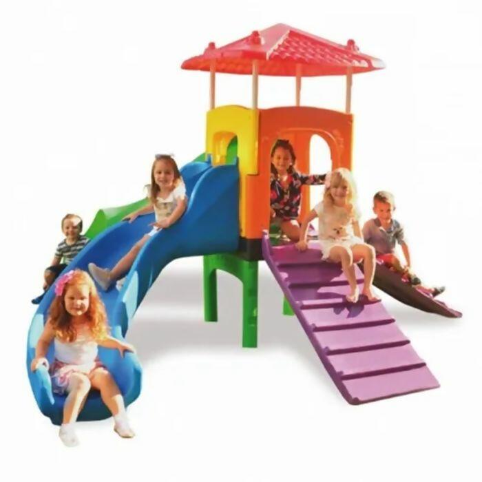 O Fun Play Xalingo é um playground super divertido com duas escaladas, um escorregador em curva e um túnel.