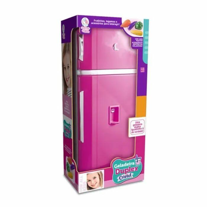 A Geladeira Duplex Lua de Cristal tem 65 cm de altura, 2 portas e diversos acessórios. Acompanha 2 copinhos para a criança brincar com o bebedouro, caixinhas de condimentos e frutinhas para guardar na geladeira. Com um design super realista, estimula a imaginação e a criatividade promovendo uma brincadeira muito divertida.
