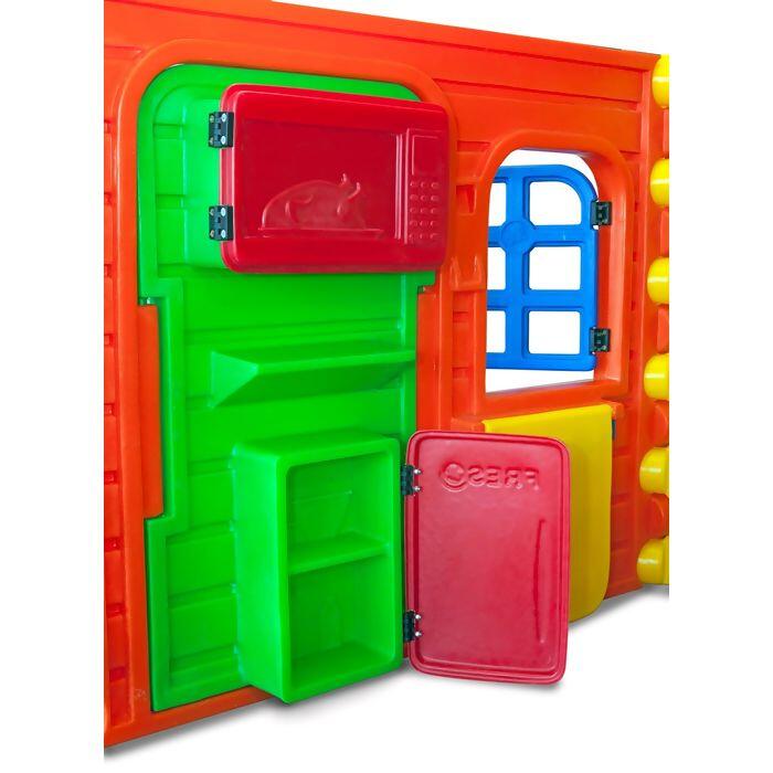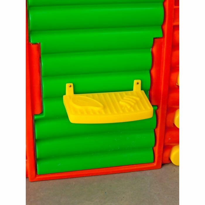 - parte de trás com meia-porta ou escorregador pequeno, abertura em forma de janela sem fechamento, túnel de passagem, tabela de basquete, parapeito instalado na janela e ferrinho de passar preso por uma cordinha.