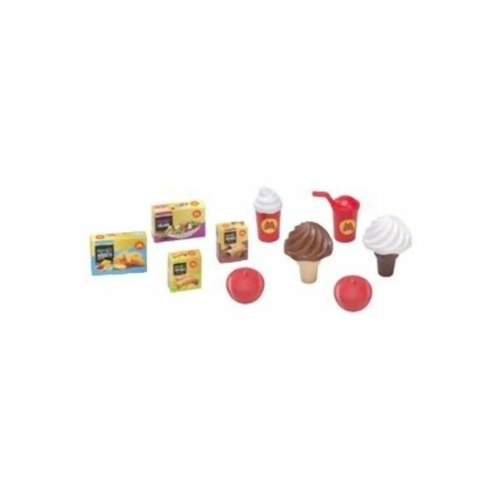 A Hamburgueria Mágica vem completa com uma variedade de acessórios, incluindo uma caixa registradora, bandeja, batatas fritas, refrigerantes, milk shakes, hambúrgueres, sorvetes, caixinhas, maçãs, dinheiro de brinquedo e adesivos divertidos. Tudo o que os pequenos precisam para montar sua própria lanchonete e servir seus amigos e familiares com estilo!