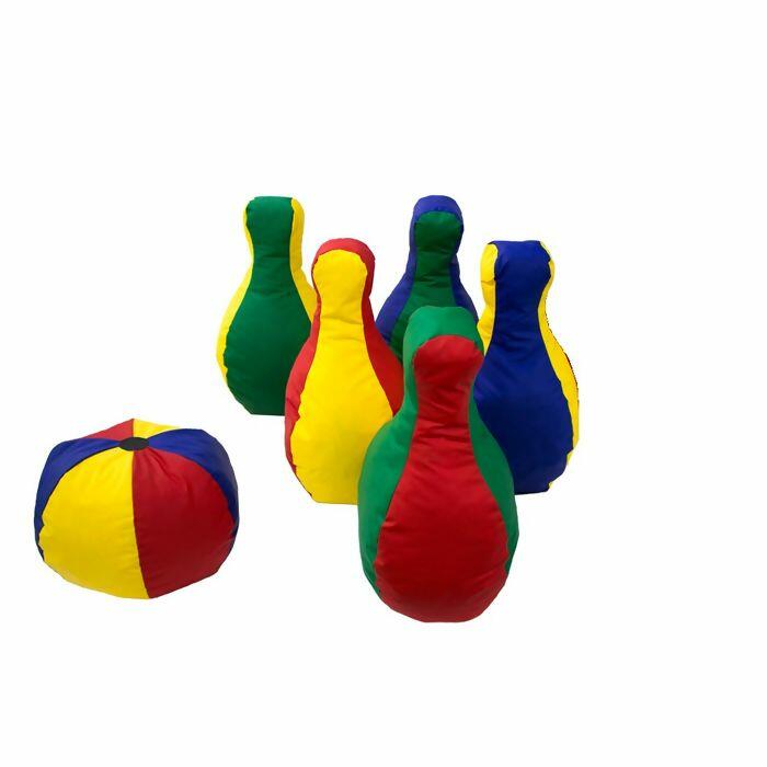 Com peças de bagum e enchimento de espuma em flocos, a diversão fica muito mais segura. O jogo conta com cinco pinos e uma bola. Além da mobilidade da criança para acertar os pinos, o educador pode trabalhar quantidade, cores, entre outras formas de aprendizagem.