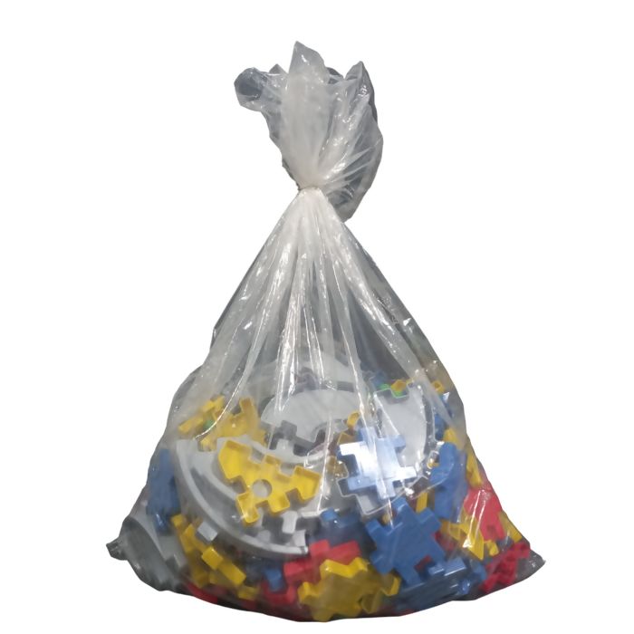 As peças são acondicionadas em bolsa de PVC transparente com zíper.