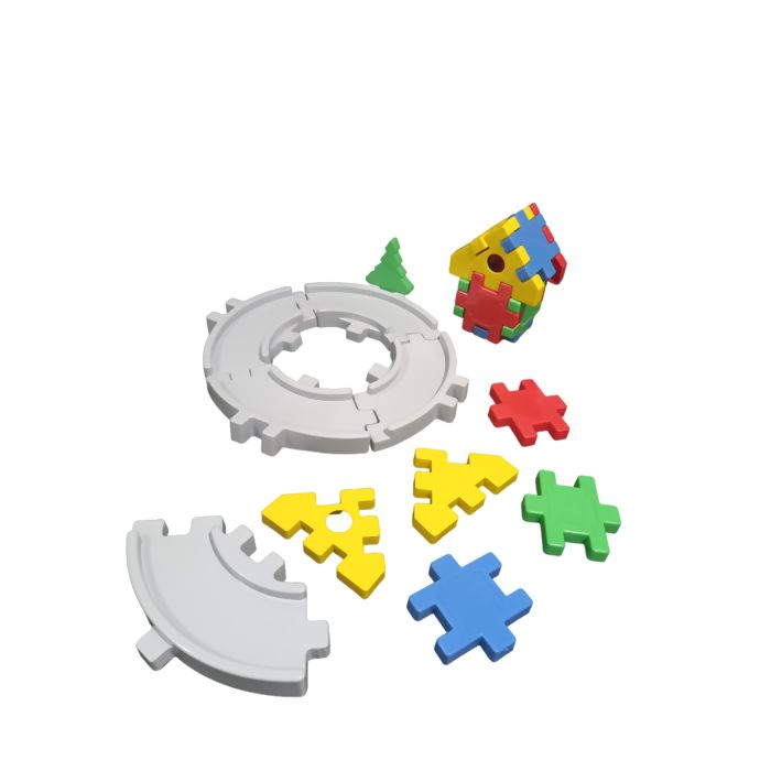 Ideal para desenvolver a coordenação motora, noção de espaço e imaginação da criança, possibilitando a criação de pistas e circuitos para carrinhos em diversas direções.