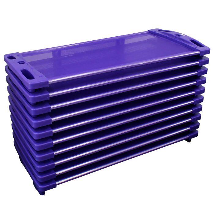 Kit Caminha Empilhável Dedobrinquedo Roxa - 10 unid.A caminha empilhável luxo é uma ótima opção para quem deseja aproveitar bem o seu espaço e manter o ambiente organizado. O sistema de empilhamento garante ventilação entre as caminhas. - Duas cabeceiras inteiriças em polipropileno.- Drenos que facilitam a lavagem e higienização total.- Porta objetos.- Duas estruturas laterais em tubos de alumínio adonizado, resistente a corrosão em geral. Espessura mínima das paredes do alumínio: 1,50mm. Liga 6063 de têmpera do alumínio: T5.- Área de repouso composta por uma rede confortável e vazada, confeccionada em tecido 100% poliéster empastado em PVC, com espessura mínima de 0,51mm e gramatura mínima de 310g/m2 antifungo, anti- UV, antioxidante, anti-chama, isento de F-talatos.- Laterais soldadas de maneira uniforme e resistentes a tração manual, não possuindo velcro em nenhuma das extremidades.- Presilhas em (PP) virgem que se encaixam perfeitamente nas cabeceiras, prendendo assim a área de repouso.- Ponteiras de borracha antiderrapante para que a cama não deslize, permitindo que a criança possa se movimentar de forma segura durante o sono.*Foto ilustrativa.