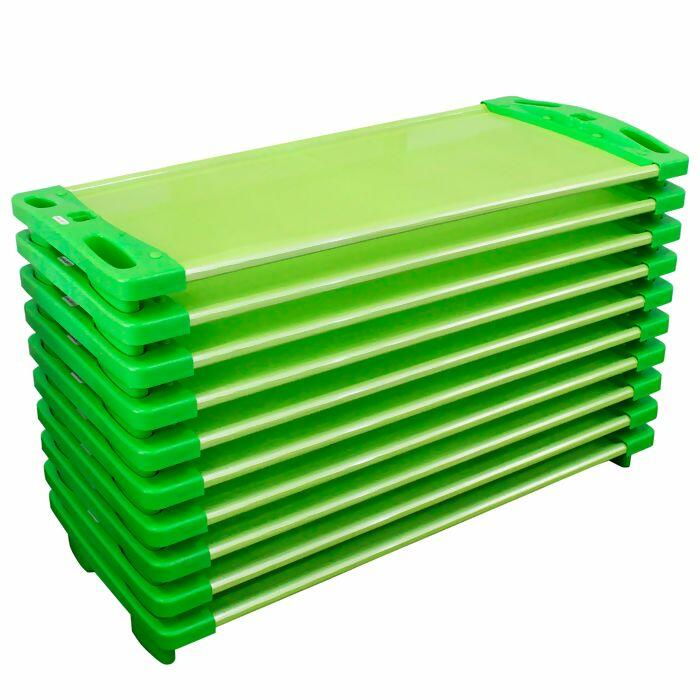 Kit Caminha Empilhável Dedobrinquedo Verde - 10 unid.A caminha empilhável luxo é uma ótima opção para quem deseja aproveitar bem o seu espaço e manter o ambiente organizado. O sistema de empilhamento garante ventilação entre as caminhas. - Duas cabeceiras inteiriças em polipropileno.- Drenos que facilitam a lavagem e higienização total.- Porta objetos.- Duas estruturas laterais em tubos de alumínio adonizado, resistente a corrosão em geral. Espessura mínima das paredes do alumínio: 1,50mm. Liga 6063 ...veja mais
