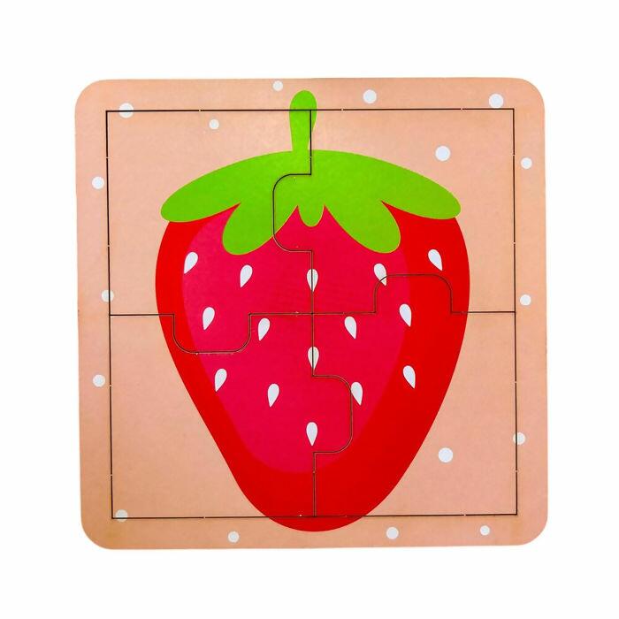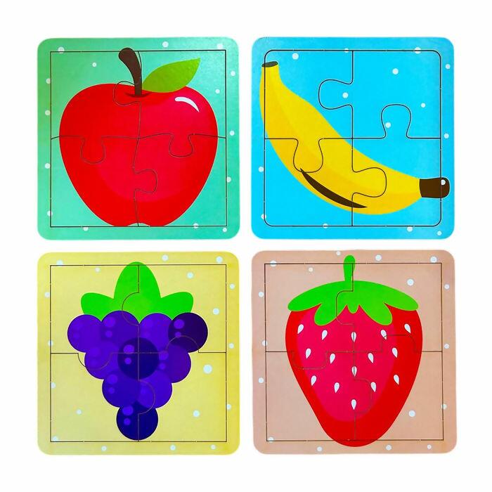Contém 4 quebra-cabeças temáticos de frutas.
