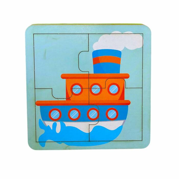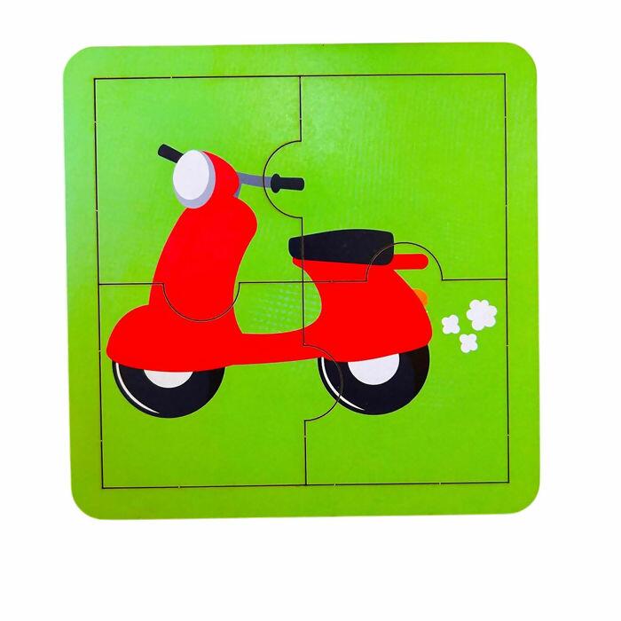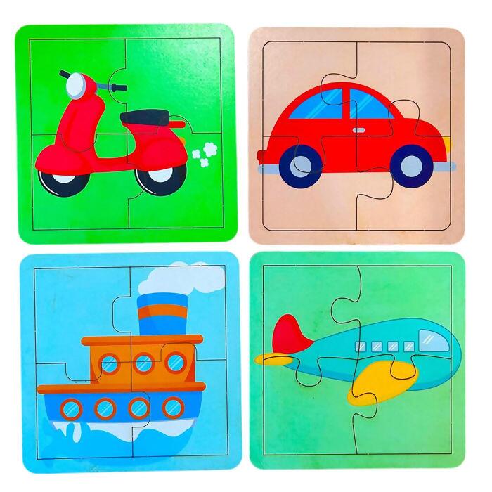 Contém 4 quebra-cabeças temáticos de meios de transporte