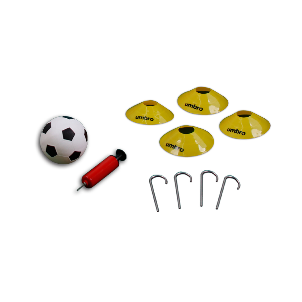 Ideal para todas as idades, este conjunto abrangente da renomada marca Umbro oferece tudo o que você precisa para aprimorar suas habilidades, seja no quintal, no parque ou no campo.