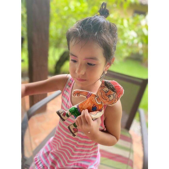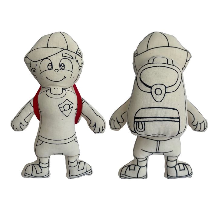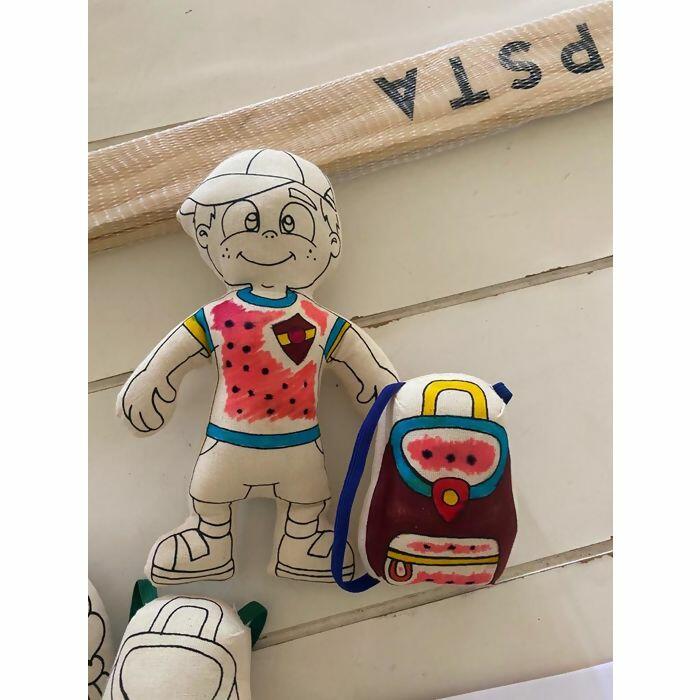 - O boneco, a mochilinha e a sacolinha sõo de algodão cru e podem ser lavados e pintados novamente (se a pintura usada for lavável).