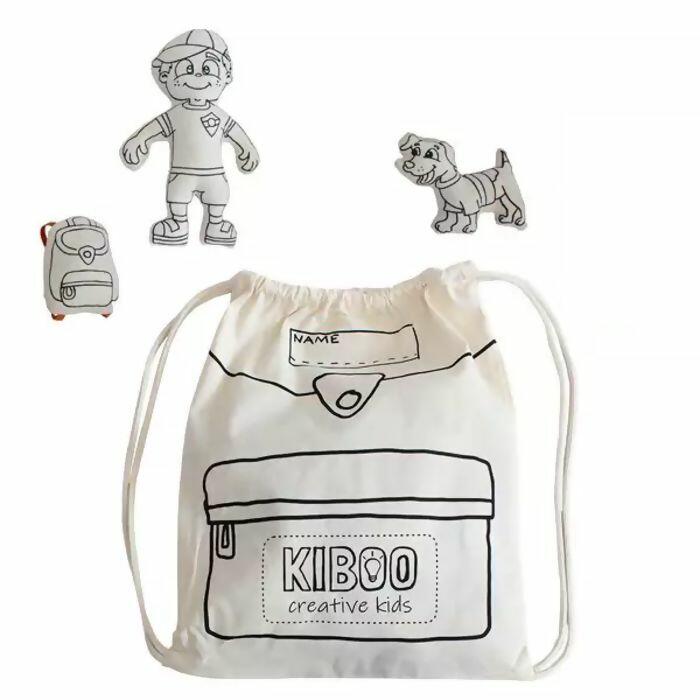 O kit vem com um boneco de boné e sua mochilinha + um pet + uma sacochila para a criança customizar e guardar brinquedos, livrinhos e materiais.