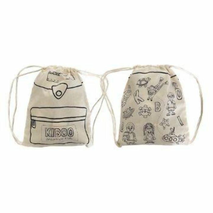 - A sacolinha tem o desenho de uma mochila de um lado, para convidar a criança a escrever seu nome e customizar sua mochila. O outro lado tem letras e personagens divertidos para colorir.