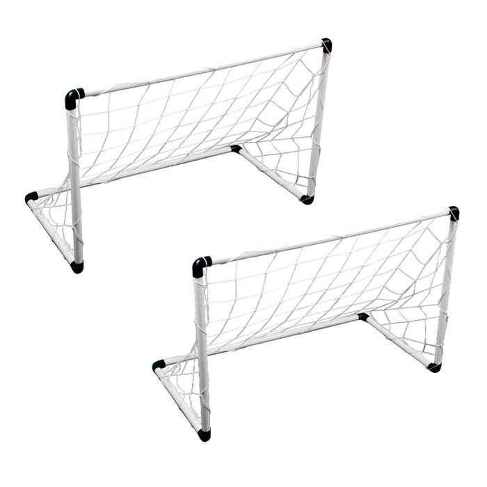 - Traves Modulares 2 em 1: O kit inclui duas traves pequenas (93 x 60 cm) que, juntas, se transformam em uma trave grande de 1,84m x 1,18m. Perfeito para adaptar o treino ao espaço disponível, seja no quintal, parque ou quadra.