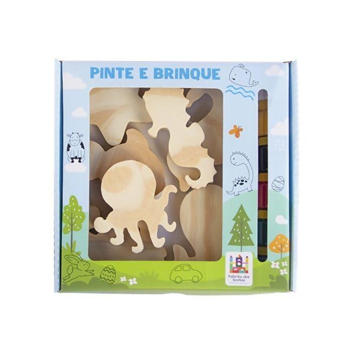 Conjunto no tema fundo do mar. São 7 peças em madeira de reflorestamento, 6 cores de tinta atóxica e pincel para colorir. Além de pintar os personagens e objetos, basta soltar a imaginação para criar uma história, o cenário e a interação entre os bonecos!