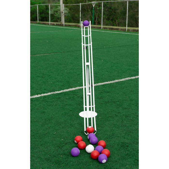 O Kit Lança Bocha possui uma base lançadora feita com ferro de alta resistência na cor branca. Possui várias regulagens de altura.