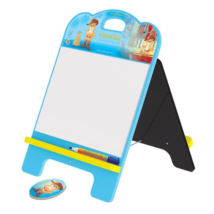 Descrição Lousa 2 em 1 Gato de Botas Junges