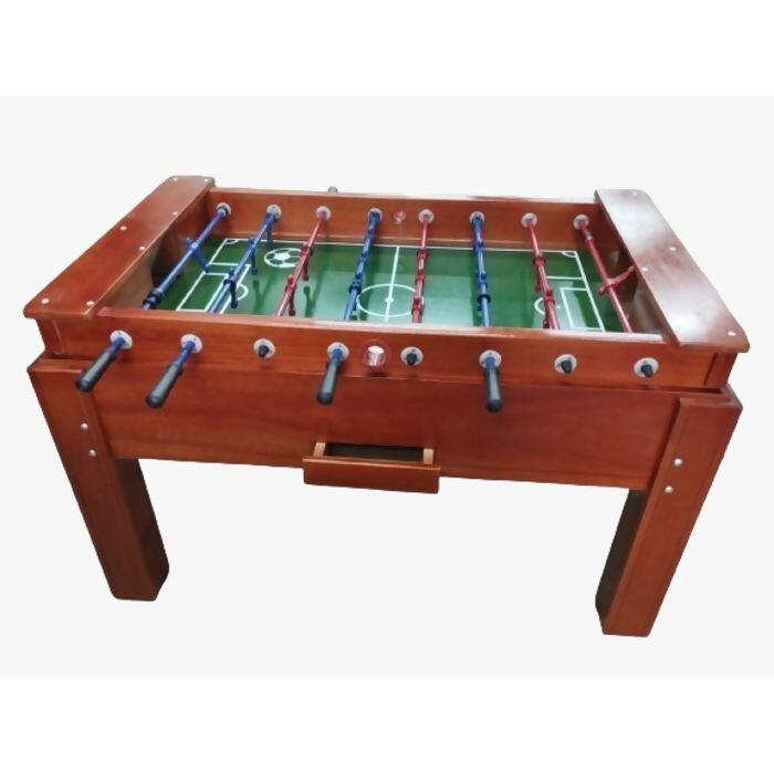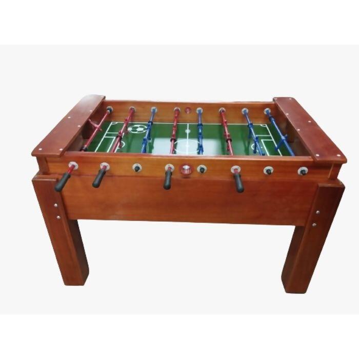 Nas medidas oficiais, confeccionada em madeira maciça cedrinho, campo de jogo com espessura de 5 mm, bonecos em alumínio e com 04 pés. O modelo embutido é aquele em que os ferros não transpassam para o lado do adversário, portanto não há perigo de machucar os oponentes, sendo mais aconselhável para quem tem criança. O "Totó", é diversão garantida. Acompanha 2 bolinhas.