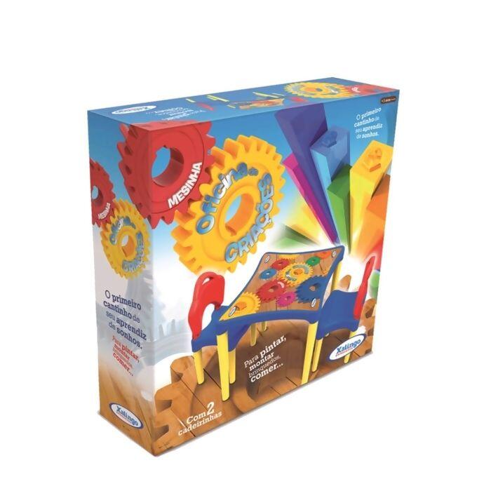 As crianças vão adorar brincar, desenhar e fazer suas atividades escolares nesta linda mesinha. Fabricada em plástico injetado e com pés desmontáveis, o que torna a mesinha mais fácil de transportada. Acompanha duas cadeirinhas. Mesinha Oficina de Criações Xalingo, reúna os amiguinhos e divirta-se!